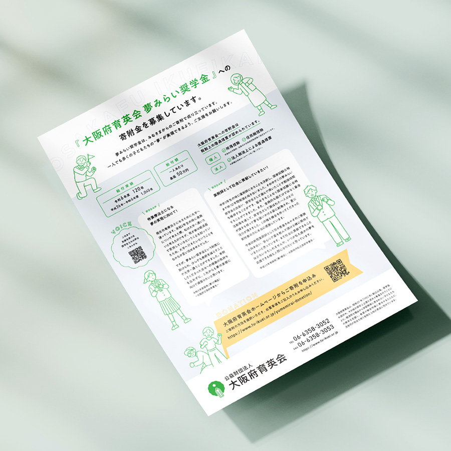 公益財団法人大阪府育英会が実施されている「大阪府育英会夢みらい奨学金」への寄附を募るためのポスター・チラシ・大阪メトロの吊り革広告を制作させていただきました。